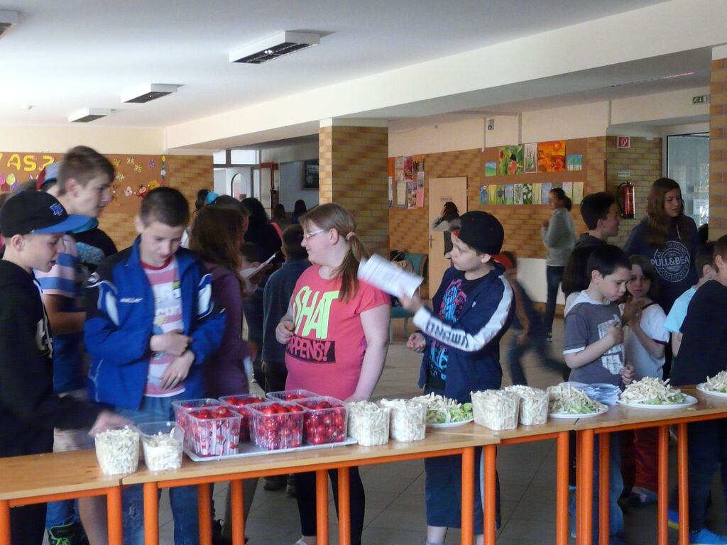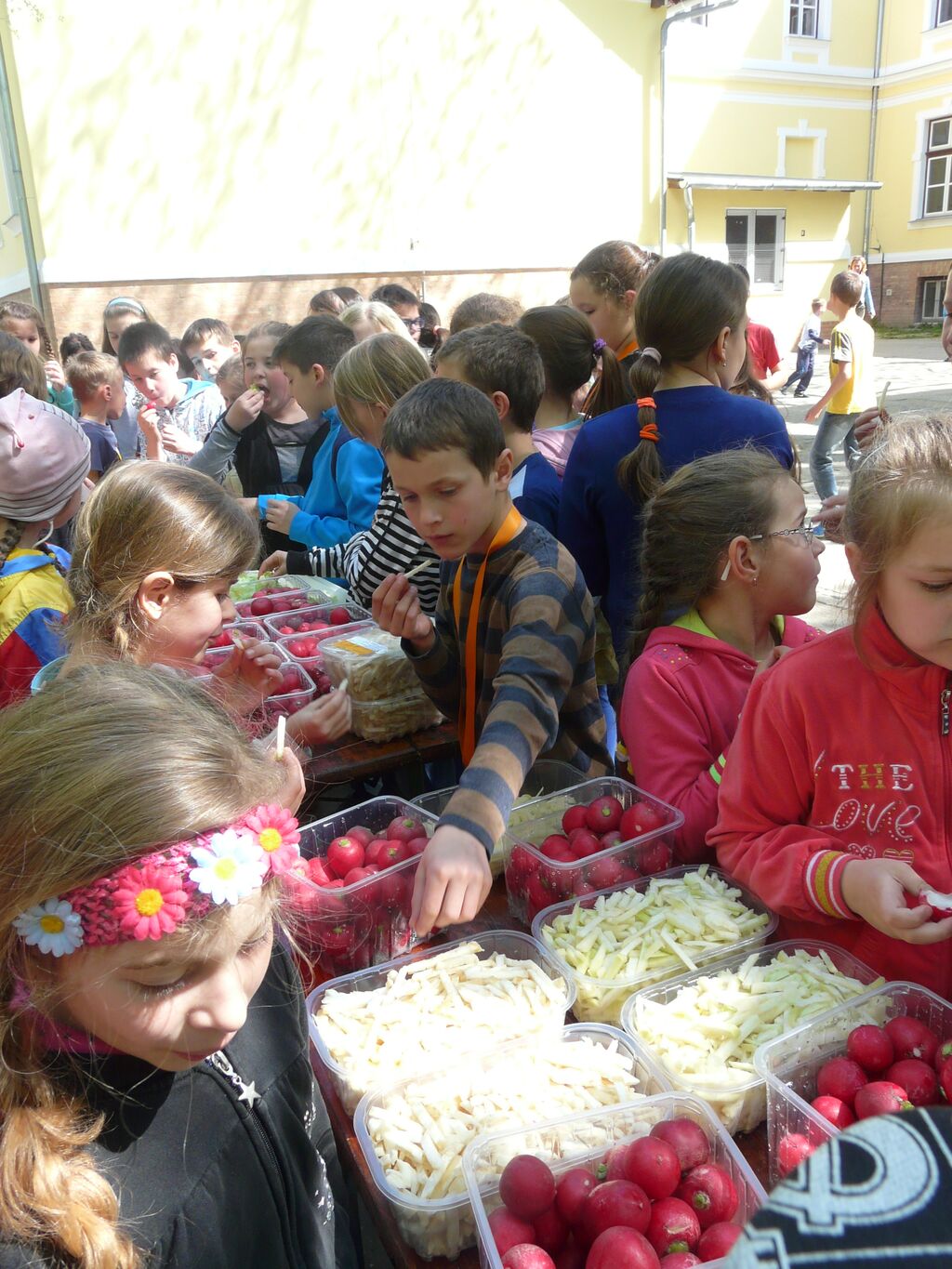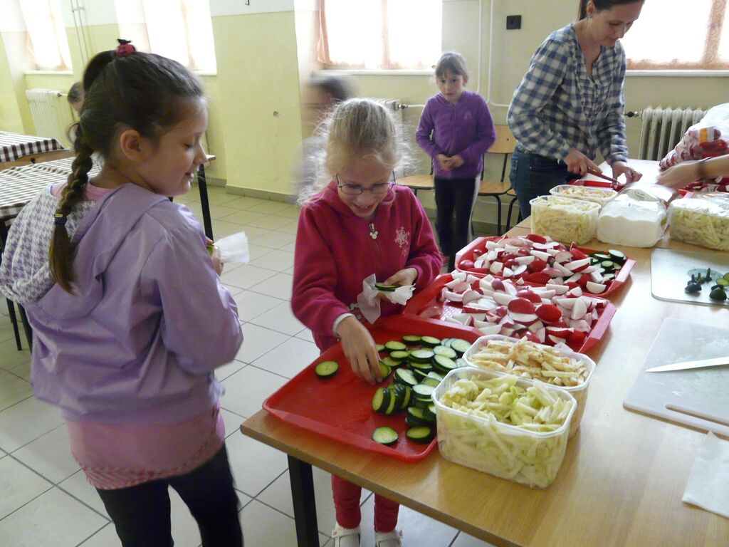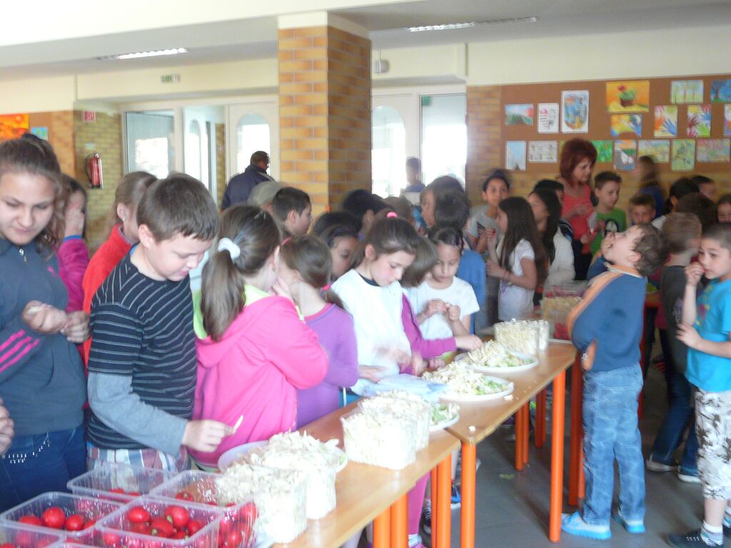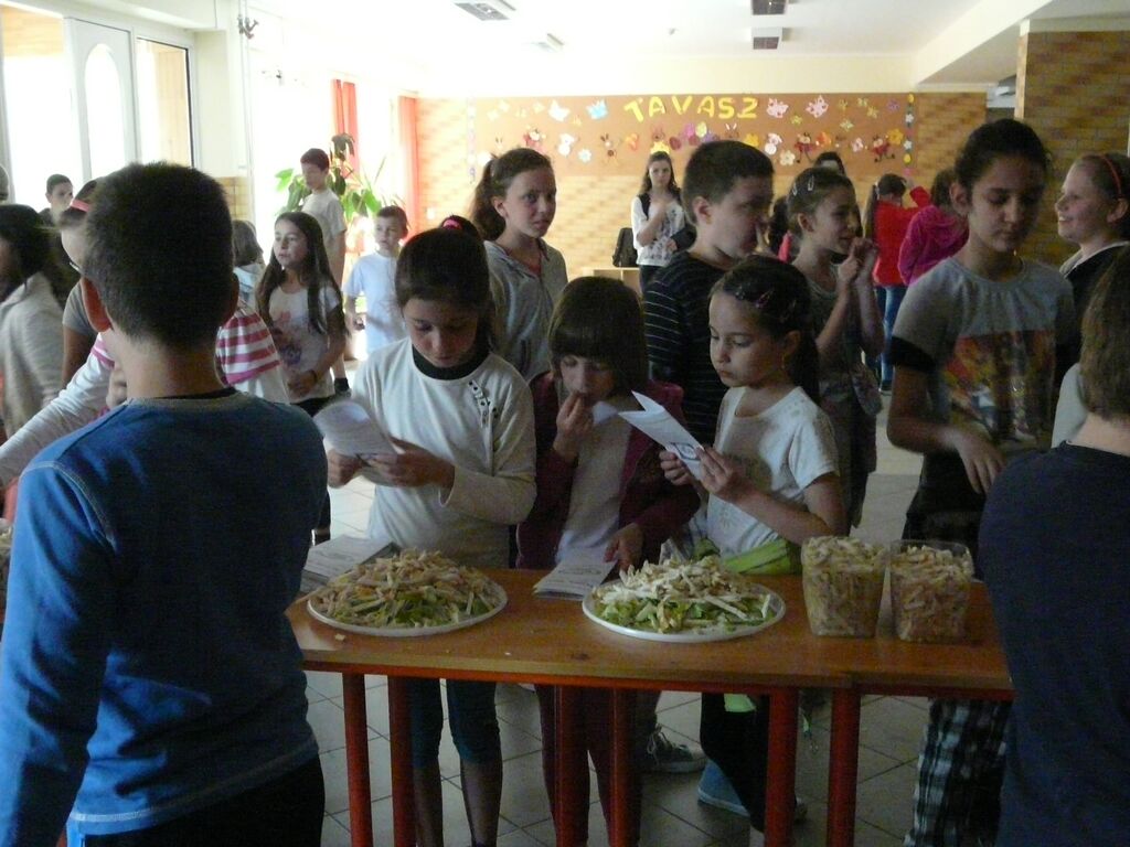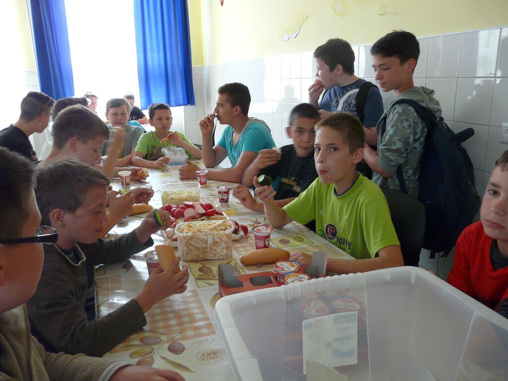 Az Iskolagyümölcs Program kísérő intézkedésének keretében a DélKerTÉSZ először a 2015 tavaszi félévében szervezett kóstoltatást partneriskolái számára. A kóstoltatás során kollégáink az összes iskolába ellátogattak, ahová év közben zöldséget, gyümölcsöt szállítunk. Ez az akció lehetőséget nyújtott a személyes találkozóra a gyerekekkel, nevelőkkel és az ügyintézőkkel. A látogatások alkalmat adtak arra, hogy bemutatkozzunk, és tájékoztassuk a gyerekeket, honnan is érkezik hozzájuk a heti vitaminadag. A kóstoltatásnak természetesen nevelő célzata is van: kivonulásunk alkalmával hangsúlyoztuk a gyerekeknek a zöldség- és gyümölcsfogyasztás fontosságát, a megfelelő vitaminbevitelt és ismertettük az egészséges étrend jellemzőit. Emellett egy tájékoztató anyag is kiosztásra került, melyben bemutattuk az éppen kínált zöldségek és gyümölcsök jellemzőit, információkat nyújtottunk a növények eredetéről, vitamintartalmáról, egészségre gyakorolt jótékony hatásukról, valamint fogyasztási tanácsokat is összegyűjtöttünk a gyerekek számára. Sok gyermek számára nem volt minden kínált zöldség és gyümölcs ismert, így szerepünk volt azok megismertetésében, a változatos táplálkozás bemutatásában. Tapasztalataink szerint sok családban nem megfelelő gyakorisággal kerül az asztalra zöldség és gyümölcs, a gyerekek csak az alapvető fajokat ismerik, az ismeretlen ételektől ódzkodnak. A kóstoltatás alkalmat adott arra, hogy bátorítsuk őket a szokatlanabb zöldség- és gyümölcsfélék megkóstolására is, mint például a zeller. Nagy népszerűségnek örvendett a gyerekek körében az eper, cseresznye, és a meggy, zöldségek közül pedig a saláta és a kígyóuborka. Sikernek tekintjük, hogy a kollégáink és a nevelők mintájára, bíztatásra a kevésbé kedvelt zöldségeket (retek, karalábé, zeller) is megízlelték a gyermekek. Bízunk benne, hogy a program segítségével sikerült kissé kibővítenünk a gyerekek zöldségekről és gyümölcsökről alkotott képét, új ízeket megismertetni velük, melyeket a jövőben akár otthon, szüleiktől is kérni fognak egy-egy étkezés alkalmával.