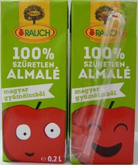 Minden kétséget kizáróan a gyerekek kedvence a gyümölcslé, amely leggyakrabban almalé, esetenként pedig alma-meggy vegyes gyümölcslé formájában kerül kiosztásra. A gyümölcslé több szempontból is fontos eleme az Iskolagyümölcs Programnak. A gyümölcslevek 100%-os szűretlen formában kerülnek az iskolákba, ezáltal a gyümölcsök nem veszítenek vitamin- és ásványianyag tartalmukból, mégis szívesebben fogyasztják el a gyerekek, mint a nyers gyümölcsöt. Emellett kiemelkedő fontosságú a folyadékbevitel szempontjából is, hiszen általánosságban elmondható, hogy a gyerekek nem fogyasztanak kellő mennyiségű folyadékot iskolaidőben, sokan víz, egyéb folyadék nélkül indulnak el otthonról. Az általunk kiosztott gyümölcslé ízletes frissítőt biztosít a gyermekek számára. A termékek kiszereléséről a Rauch Hungária Kft. gondoskodik, amely 2 dl-es formában kerül partneriskoláinkba.